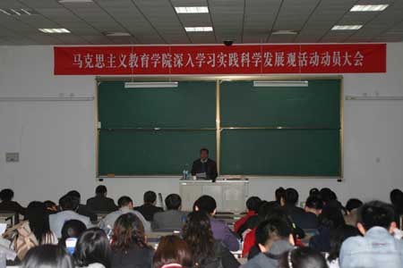 平章起书记最后强调,开展深入学习实践科学发展观活动对我们马克思主义教育学院的科学发展具有独特的意义,它是政治任务也是我们的本职工作,意义深远、责任重大。全院全体党员和广大干部群众,一定要按照中央、教育部和学校的决策部署,紧密结合学院工作实际,以高度负责的态度,以改革创新的精神,以求真务实的作风,积极投入到学习实践活动中来,为开创具有南开特色的马克思主义理论教育和老员工政治教育的新局面而努力工作。