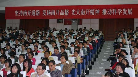 赵经理在时长两个小时的报告会中用幽默风趣、通俗易懂的语言,分别从中华民族伟大复兴的历史进程、全面发展中国特色社会主义事业的机遇与挑战、马克思主义中国化的历史进程三个大的方面详细阐述了科学发展观的重大意义。接下来,他用形象的“坐标系”给中国所处的历史阶段进行定位,从时间坐标上看,中国由鸦片战争到现在,逐渐走向现代化,也正逐渐实现中华民族的伟大复兴;从空间坐标来看,中国的发展水平与发达国家还有巨大差距,并面临新兴发展中国家的强势追赶,科学发展时不我待;从思想坐标来看,我们必须坚持中国特色社会主义,与两种错误倾向作斗争,不能否定改革,更不能放弃党的领导。他指出:以胡锦涛为总书记的党中央站在时代高度,根据世情、国情、党情的发展变化,坚持了党的三代领导集体关于发展的重要理念,又深入总结国内外在发展问题上的经验教训,科学分析我国发展进程中面临的各种新情况新问题,提出了“科学发展观”的重要发展战略。科学发展观不仅是国家经济社会发展的重要战略,更是我们日常生活、学习的重要指导思想,他鼓励师生在各方面都要努力践行科学发展观,使科学发展观真正落到实处。