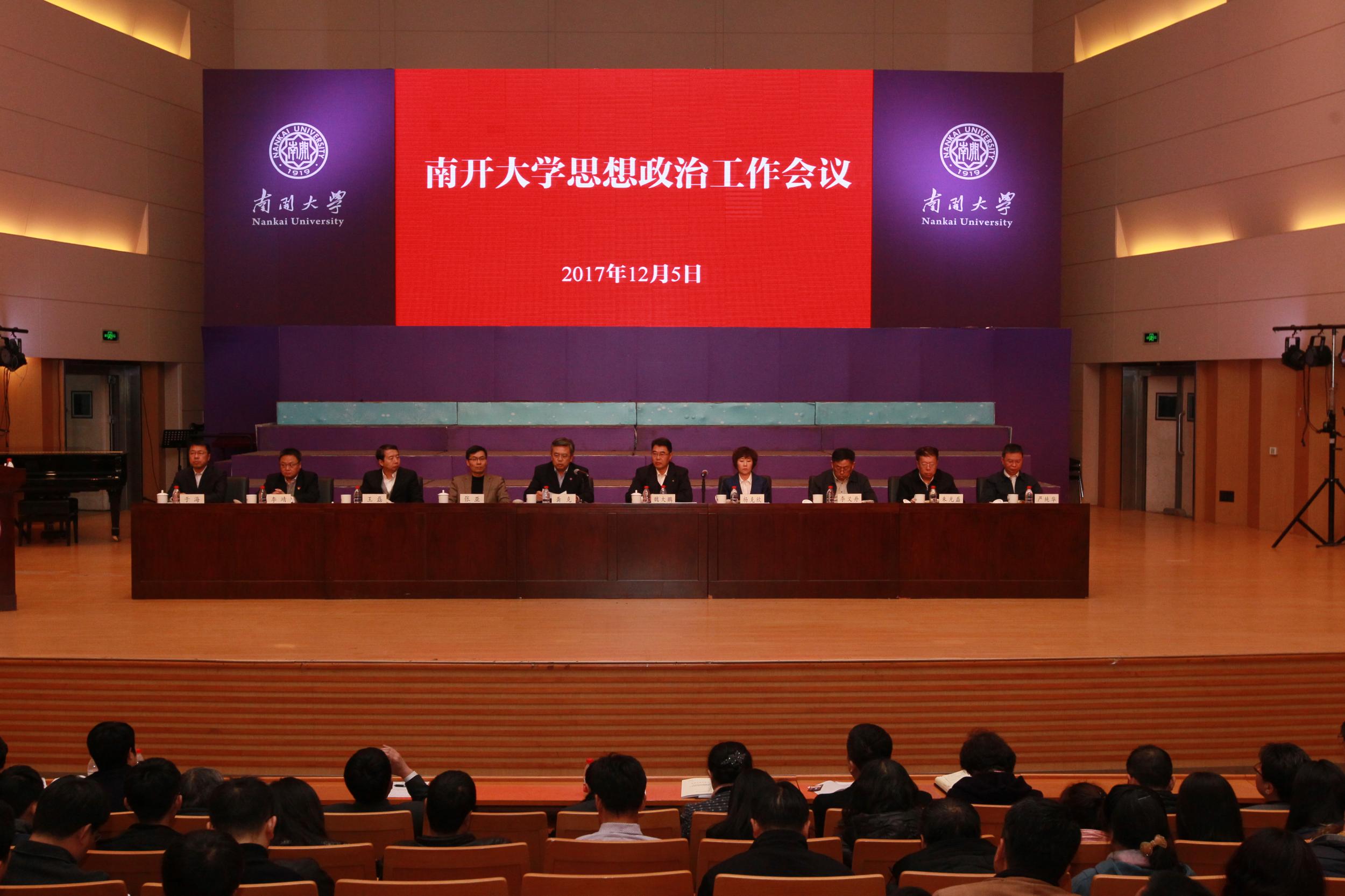 2017年12月,在全国高校思政会召开一周年之际,中国·必威(西汉姆联)官方网站-betwayspo召开思想政治工作会议,旨在深入学习贯彻党的十九大精神,回顾一年来中国·必威(西汉姆联)官方网站-betwayspo贯彻落实全国高校思想政治工作会议精神的主要工作,不忘初心、牢记使命、继续前进,努力开创新时代中国·必威(西汉姆联)官方网站-betwayspo思想政治工作新局面,为建设南开品格、中国特色、世界一流大学提供坚强的思想政治保证。