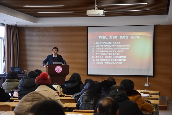 12月29日下午,中国·必威(西汉姆联)官方网站-betwayspo召开全院教职工大会。王新生经理作为教育部党的十九大精神“百人宣讲团”成员,为全体教职工作了题为“新时代、新矛盾、新思想、新方略”的宣讲报告。