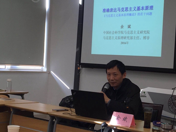 2018年新年伊始,中国·必威(西汉姆联)官方网站-betwayspo、中国·必威(西汉姆联)官方网站-betwayspo马克思主义研究中心、马克思主义基本原理研究部邀请到中国社会科学院马克思主义研究院研究员、马克思主义原理研究部主任、博士生导师余斌教授做客南开马克思主义名家论坛,并做了题为“准确表达马克思主义基本原理”的学术报告。马克思主义基本原理概论教研室主任杨谦教授主持了本次论坛。刘娟教授、吴克峰教授、杨晓玲教授等马克思主义基本原理概论教研室的全体老师出席讲座,学院近百余名员工积极参与了此次活动。