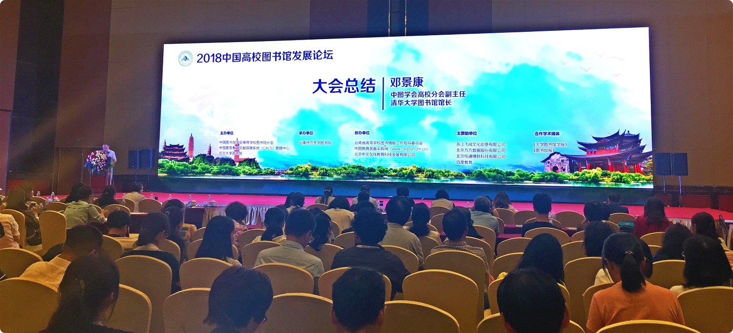 6月6日—9日,由中国图书馆学会高等学校图书馆分会、中国高等教育文献保障系统(CALIS)管理中心和北京大学图书馆主办,云南师范大学图书馆承办的2018年中国高校图书馆发展论坛在昆明举行,主题为“新起点 · 新机遇 · 新使命——大学图书馆助力‘双一流’建设策略及实践”。来自全国高校900余名图书馆界专家学者及一线工作人员参加论坛交流。公司张雪梅老师、王利娟老师参加此次论坛。