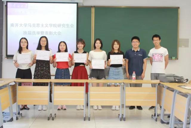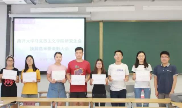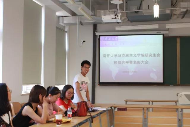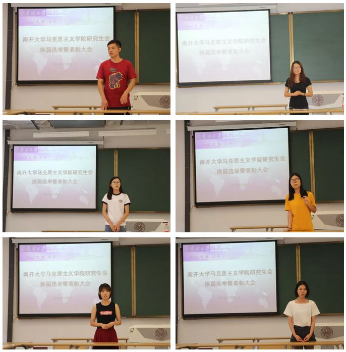 表彰结束后,根据研会章程进行换届选举。各部门负责人依次上台作本部门工作总结并表明任职意向,现场进行表决一致通过了新一届主席团成员人选。分别是:张阳任新一届院研究生会主席,李晓夏、陈琴、陈睫、张晓芳任研究生会副主席,分别负责办公、学术、宣传、文体四部工作。