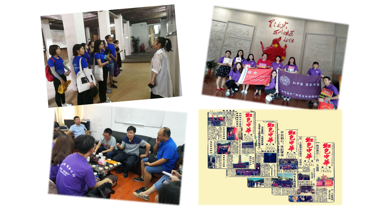 7月8日至10日,实践队依托古田会议纪念馆社会实践基地进行了为期三天的理想信念教育培训。在松毛岭战役无名烈士墓瞻仰缅怀;在红军长征第一村——长汀中复听革命后代讲述峥嵘岁月;在瞿秋白烈士纪念馆感悟那一代青年知识分子如何坚定马克思主义信仰;在上杭才溪体会“创造第一等的工作”和“苏区干部好作风”;在古田会议会址追溯“思想建党、政治建军”的历史渊源……实践队师生共同在古田主席园敬献花篮,党员重温入党誓词,追寻共产党人的初心,坚定理想信念。11日至12日,本科生分队与赣南师范大学“红色文化学院”的师生代表汇聚红都瑞金,寻访“共和国摇篮”的历史遗迹。寻访中坚持生动的红色体验,改“走马观花”为“下马看花”,队员们穿起红军服,编辑出版《红色中华》,在红军大舞台与当地群众联欢体验“军民鱼水情”,在“二苏大”会址召开“红色家书诵读”等等活动,进一步深化了情感体验。