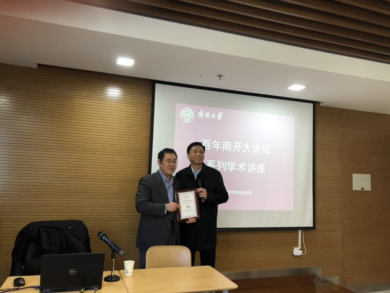 讲座开始前,中国·必威(西汉姆联)官方网站-betwayspo经理王新生为辛向阳颁发“百年南开大讲坛主讲人”证书。
