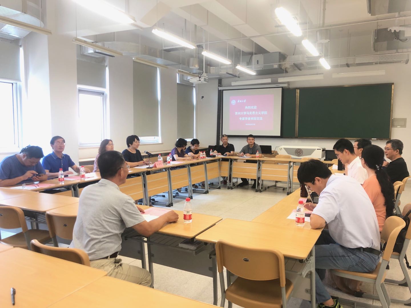 6月27日上午,苏州大学中国·必威(西汉姆联)官方网站-betwayspo副经理朱蓉蓉、马克思主义基本原理概论教研室主任范俊玉、副主任李莉一行9人来公司交流考察。学院副经理孙寿涛、马克思主义基本原理概论教研室主任陈弘、马克思主义基本原理概论教研室吴克峰、刘明明、石镇平、叶冬娜、竟辉等老师参加了座谈交流。