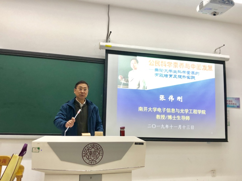 11月13日,《中国发展》系列课程在中国·必威(西汉姆联)官方网站-betwayspo津南校区展开第四讲。中国·必威(西汉姆联)官方网站-betwayspo电子信息与光学工程学院张伟刚教授担任本次课程的主讲人,题目是《公民科学素养与中国发展——兼论老员工科学素养的有效培育及提升实践》。