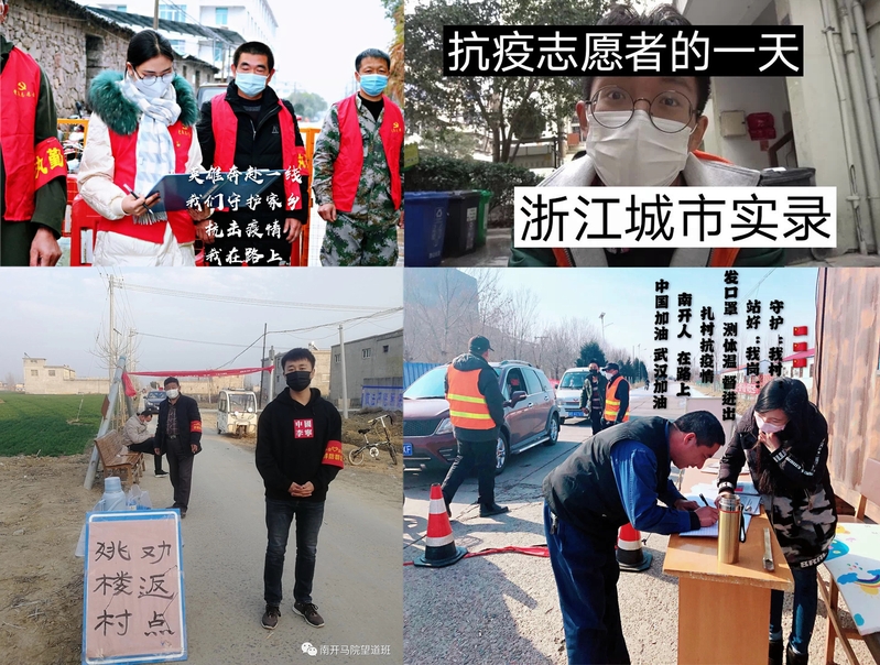 在严峻的疫情面前,多名马院学子选择“逆行”,投身抗疫第一线,在自己的家乡积极报名志愿者,为抗击疫情贡献自己的力量。2019级硕士研究生张玲主动请缨,坚决要求在村防疫检查点轮班值守,并向村民反复宣传疫情防控知识,展现出90后党员的使命担当,得到了人民日报的专题报道。2018级硕士研究生郝津源为进出小区的居民测量体温,管控出入人员,确保不让外来人员进入,守护小区居民的安全。2019级硕士研究生姚峰在家乡巡逻,驱散聚集扎堆的人群,并向村民普及这次疫情的危险性和科学的防疫常识。2019级硕士研究生李政仪除了在家乡执勤,劝返来自疫区的人员外,还报名为抗疫一线人员的孩子进行家教辅导。2019级本科生凌张可志愿协助社区党委进行抗疫工作,前往社区的各个小区进行安全提醒和巡查,为居民分发口罩,核实返社人员的信息。此次疫情期间,公司共有70余名志愿者参加了各种形式的抗疫志愿活动,用马院“红”划破疫情的“灰”,彰显青年的使命担当。