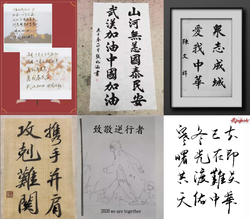 在党组织、政府及学校的统筹安排下,马院员工高度关注疫情最新情况,用自己的实际行动,帮助伟大祖国攻坚克难:通过互联网向武汉捐赠医疗物资,发表疫情随感,讲述身边人的故事;通过书法、绘画、诗词等形式,为“逆行者”们加油,共筑人心城墙。