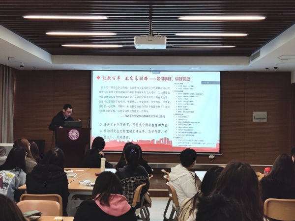 随后,孙海东老师结合自己学术所长与教学感悟为我们解读了《通知》的重要精神,从明理、崇德、增信、力行四方面引导大家在学习党史时要把握好这四个维度,坚决抵制历史虚无主义。