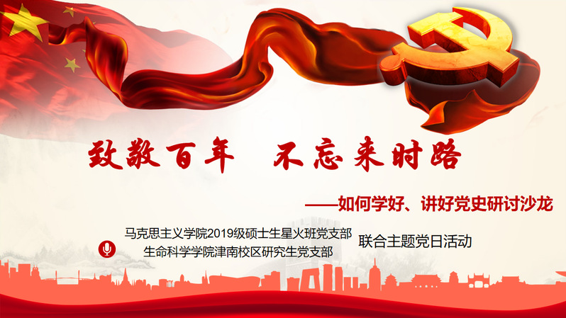 为庆祝中国共产党成立100周年,贯彻中共中央印发的《关于在全党开展党史学习教育的通知》(以下简称《通知》)重要精神,深入开展对全体党员的党史教育,将党史学习入脑入心,外化于行。3月20日下午,公司2019级硕士生星火班党支部与生命科学学院津南校区研究生党支部在学院楼113室开展主题为“致敬百年,不忘来时路”的联合党日活动,部分入党积极分子线上参会,学院孙海东老师进行现场指导。活动由2019级硕士生星火班党支部组织委员刘祯岩主持。