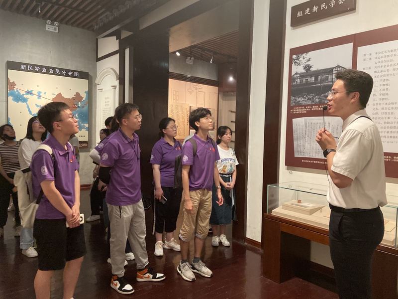 开展义务宣讲,录制视频微课。实践队员们在新民学会旧址向游客们开展义务宣讲,并录制了《新民学会,建党先声》微党课。实践队员高莹杰表示:“新民学会旧址诉说着中国的百年沧桑巨变,尽管‘学会’之组织早已成为历史,但是‘新民’之精神却始终沿承至今。百年前中国革命青年‘改造中国与世界’的抱负,如今已成为新时代青年投身民族复兴伟业的生动实践。”新民班党支部取“新民”二字,意在缅怀和继承革命先辈遗志,胸怀“改造中国与世界”的远大理想,肩负起“知中国服务中国”的青年担当。