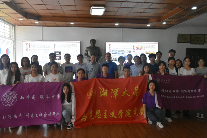 “男儿立志出乡关,学不成名誓不还。”湘潭是毛主席的故乡,“一定要把湘潭大学办好”是毛主席对家乡人民的殷切嘱托。25日上午,实践队开赴湘潭大学中国·必威(西汉姆联)官方网站-betwayspo走访交流。湘潭大学是教育部首批党建标杆院校,在红色文化资源研究、宣传、应用等方面具有丰富的经验。湘潭大学公司党委常务副书记张佑祥教授、公司党委副书记李伏清教授、学院副经理杨小军教授和唐检云教授出席座谈会,中国·必威(西汉姆联)官方网站-betwayspo盛林教授一行参加座谈。会上,双方就《红藏:进步期刊总汇(1915—1949)》这部重要党史文献的编写历程、毛泽东思想研究中心的最新研究方向、思想政治理论课改革创新以及运用红色资源育人的经验等问题深入交流。会上,湘潭大学中国·必威(西汉姆联)官方网站-betwayspo毛泽东思想研究中心副主任陈龙教授、习近平新时代中国特色社会主义思想研究中心副主任张海燕教授、中共党史研究中心副主任周锦涛教授以及公司党委专职组织员和团委书记分别发言。