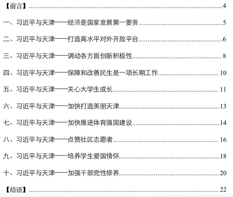 习近平总书记先后多次亲临天津视察,在经济发展、对外开放、创新驱动、志愿服务、民生问题、生态共建、体育强国、爱国教育、思政教学与党性修养等方面指明方向,为天津的发展擘画奋进的新起点、新方向、新目标。