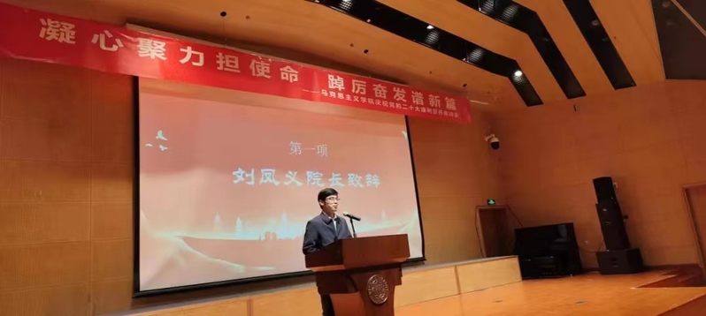 晚会伊始,中国·必威(西汉姆联)官方网站-betwayspo经理刘凤义教授致辞。刘凤义经理引用了党的二十大报告中习近平总书记对当代青年的殷切寄语,指出马院青年肩负的责任和使命,由此对同学们提出了坚定理想信念、培养思维能力和水平、培养问题导向性学习方法三点期望,鼓励同学们把握历史机遇,保持奋斗姿态,奋勇争先,赢得更加伟大的胜利和荣光,在新征程上谱写新篇章。