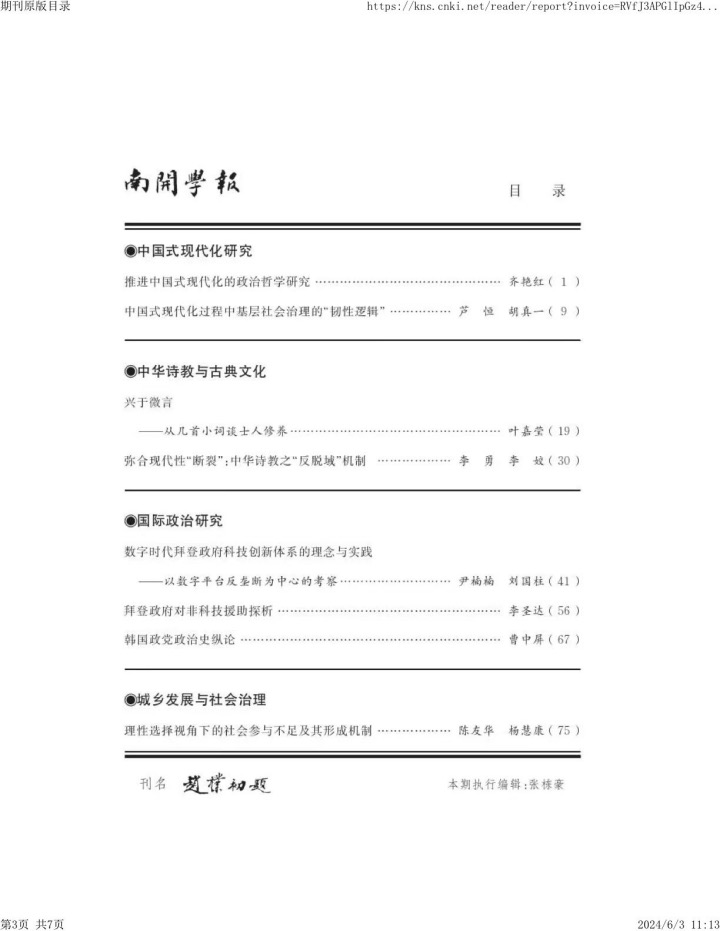 公司齐艳红教授在《南开学报》发表文章《推进中国式现代化的政治哲学研究》。文章认为,从中国式现代化进程看,马克思主义政治哲学研究始于对中国社会主义现代化建设规律的自觉探索和反思。中国的市场化社会转型必然要求从现代性语境中出场的马克思主义哲学,面向时代的需要和新的实践实现自身的观念更新。哲学基础理论研究、价值论研究、社会哲学研究,共同构成了马克思主义政治哲学兴起和发展的观念基础。政治哲学的兴起拓展并深化了关于中国式现代化的理论研究,在社会哲学研究的早期确立了“全面的现代化”观念,呼唤着现实性的政治哲学的研究;在新时代,关于民主政治的现代化和国家治理现代化的阐释和建构,深化了对中国式全面现代化的理论研究。继续推进中国式现代化的政治哲学研究,就要坚持整体性观念,注重对历史传统的研究,开展中西现代化的多层次比较研究。