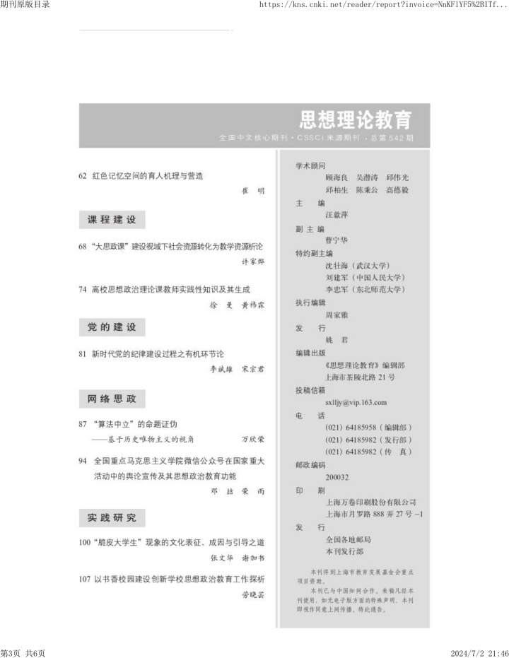 公司徐曼教授在《思想理论教育》发表文章《高校思想政治理论课教师实践性知识及其生成》。文章认为,高校思想政治理论课教师的实践性知识是影响思政课成效的关键的主体性要素,它能帮助教师在特定的教学情境中更好地“解题”。思政课教师的发展应当重视实践性知识的开发利用。在教与学矛盾的驱动下,高校思政课教师经由日常教学的反思性实践生成实践性知识,这一内生过程是通过实施“教学活动前的反思”、“在教学中的反思”以及“对教学本身的反思”而具体呈现的。在实践工作层面,应从理念引领、资源整合、生态构筑等方面建立实践性知识的发展机制,促进高校思政课教师内在知识体系的不断优化。