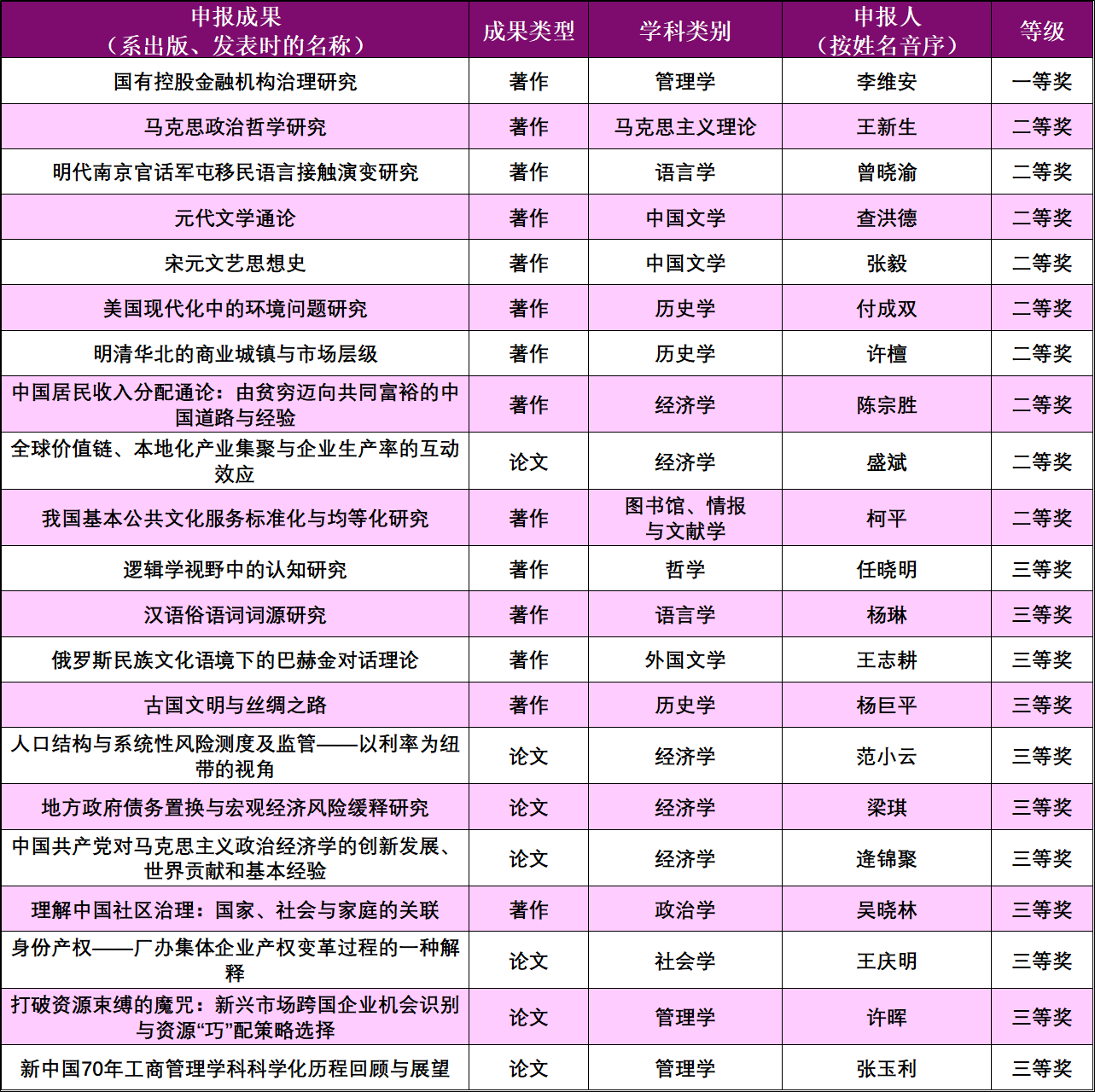 高等学校科学研究优秀成果奖(人文社会科学)由教育部设立,是中国人文社会科学领域最具公信力和影响力的奖项,旨在推动高校加快构建中国特色哲学社会科学,建构中国自主的知识体系,为全面建设社会主义现代化国家、全面推进中华民族伟大复兴作出更大贡献。本届评选的是2018年1月1日至2021年12月31日期间的成果。