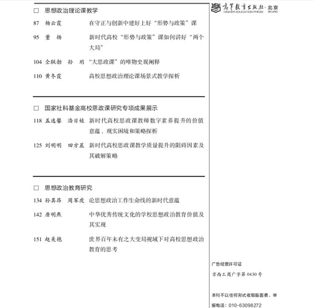 公司刘明明教授在《思想理论教育导刊》发表文章《新时代高校思政课教学质量提升的阻碍因素及其破解策略》。文章认为,提升高校思政课教学质量是落实立德树人根本任务的关键举措,它直接关乎社会主义事业合格建设者和可靠接班人的培养。党的十八大以来,党和国家高度重视高校思政课建设,思政课建设环境得到全面改善,思政课教师队伍建设实现跨越式发展,在全社会凝聚起提升高校思政课质量的广泛共识。然而,高校思政课教学质量与国家、人民和老员工的期待仍有一定距离。从成因上而言,教师队伍高质量发展不充分、员工主体性发挥不彻底、管理部门聚焦立德树人主责主业不充足以及错误社会思潮的侵染等构成高校思政课教学质量进一步提升的制约因素。在准确剖析阻碍因素的基础上,提升高校思政课教学质量必须相应地从打造高素质思政课教师队伍、激发员工主体性、提高管理部门履责能力、营造良好社会氛围等四个方面着手,构筑提升高校思政课教学质量的强大合力。