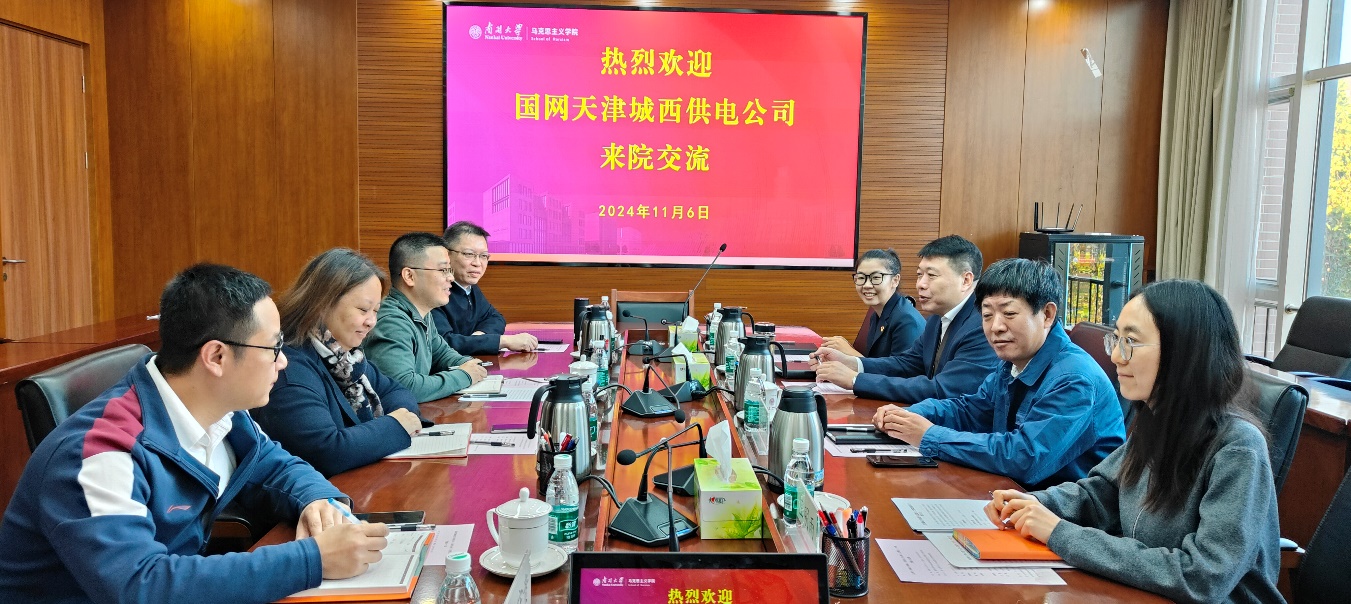 刘聪详细介绍了国网天津城西供电公司在基层党建、社会服务、安全管理以及企业文化等方面的建设成果,他指出,公司在以党建引领发展新质生产力,落实“四个善作善成”“十项行动”的具体实践中,积累了宝贵的经验,也明确了未来发展的目标和方向,希望通过与南开马院共建,进一步提升党员职工的思想觉悟和内生动力,推动深化改革的各项举措落实见效。