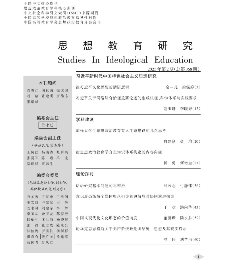 公司余一凡教授在《思想教育研究》发表文章《论习近平文化思想的话语逻辑》。文章认为,话语在思想的形成发展及阐释传播过程中扮演着重要角色。习近平文化思想围绕“新时代坚持和发展什么样的中国特色社会主义文化、怎样坚持和发展中国特色社会主义文化”这一话语主题,遵循“为何这样说话——为谁这样说话——具体说什么话——应该怎样说话”的逻辑理路,以回应实践诉求促进话语生成、以坚持人民至上彰显话语立场、以聚焦文化发展构筑话语体系、以善用语言艺术完成话语表达,创造了合目的性、合道义性、合规律性、合审美性的崭新话语形态,是用中国话语阐释中国实践的时代典范。