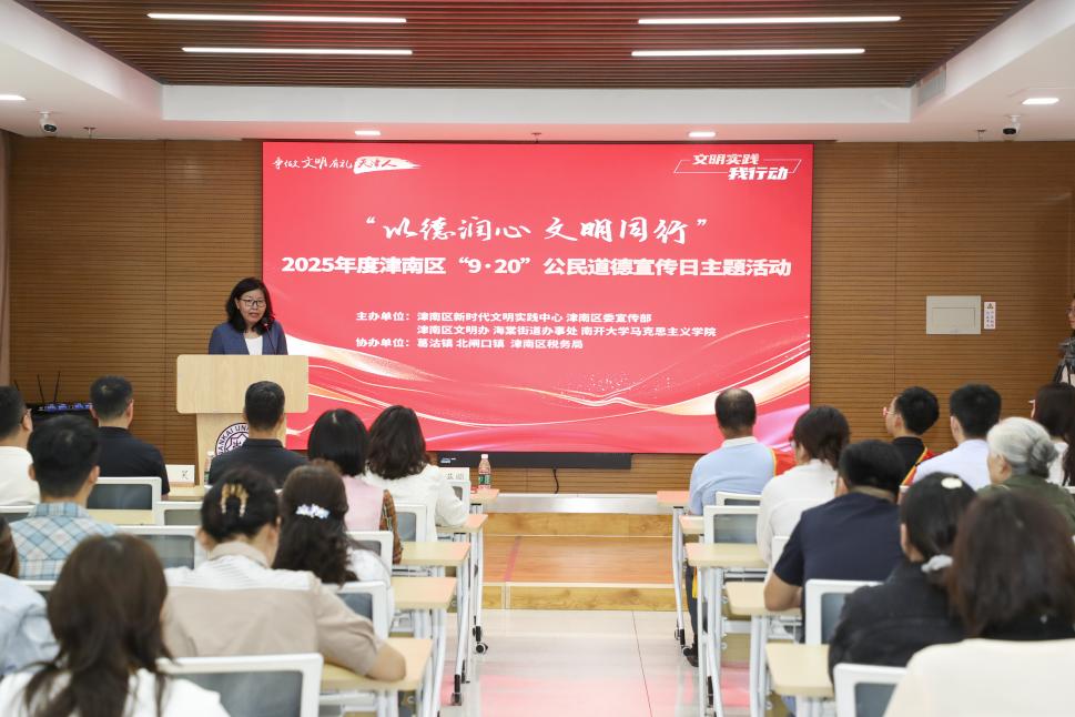 2025年9月19日,在第23个全国公民道德宣传日来临之际,“以德润心 文明同行”2025年度津南区“9·20”公民道德宣传日主题活动,在中国·必威(西汉姆联)官方网站-betwayspo举办。活动以“身边榜样讲故事、校地联动传文明”为核心,用鲜活事迹传递道德温度,让文明新风在百年学府落地生根。津南区道德模范、相关街镇新时代文明实践所站负责人及群众代表和学院师生代表近百人参加。