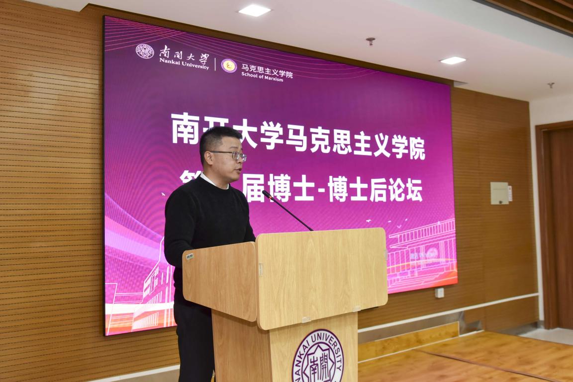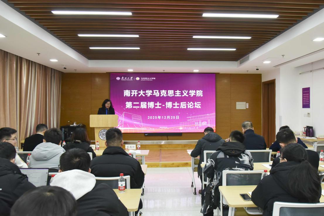 崔满顺代表学院致辞,向来自全国各地的青年学者致以热烈欢迎。她表示,南开马院作为全国首批重点马院,秉承“允公允能,日新月异” 校训,构建了本硕博完整人才培养体系,拥有 9 个二级学科博硕士点、20 余个高水平教学科研平台,近年来在国家级项目申报、顶刊成果发表、教学成果评选等方面屡获佳绩,“师生四同” 育人模式广受认可。她强调,青年学者是马克思主义理论传承发展的中坚力量,此次论坛是学院落实新时代人才强校战略的具体举措,为青年才俊搭建了交流互鉴的优质平台。鼓励青年学者充分利用论坛契机展示才华、碰撞思想,感受南开深厚的学术底蕴与文化魅力。